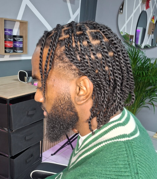 Le service regroupe plusieurs techniques incontournables de la coiffure afro, adaptées aux envies comme aux styles de vie. Parmi les options proposées, on retrouve les nattes collées, idéales pour un rendu net et structuré, les vanilles (twist) pour un style plus souple et naturel, ainsi que les locks pour celles et ceux qui souhaitent affirmer une identité capillaire forte.