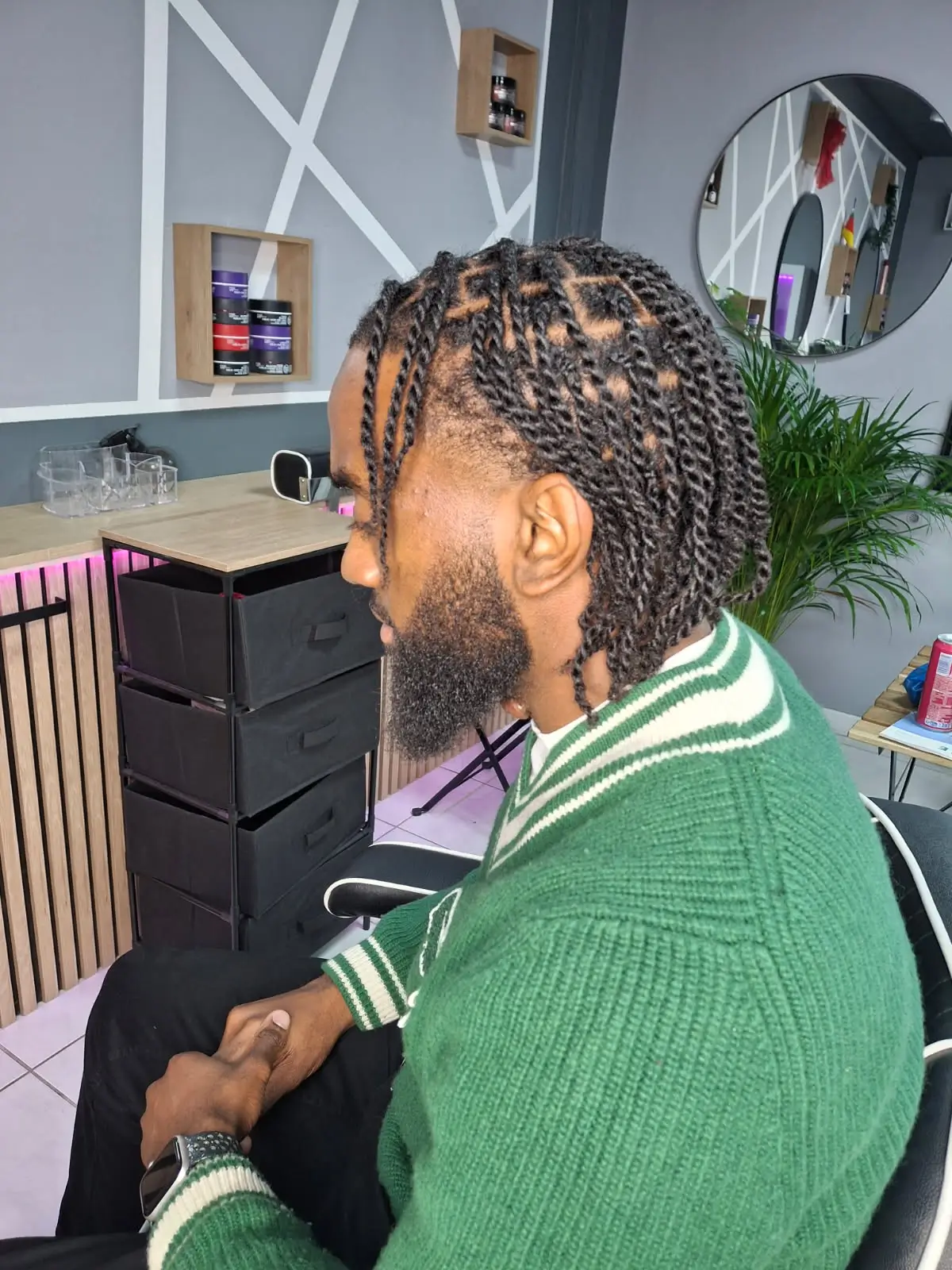 Le salon propose également des alternatives tendances comme les fausses locks, les tresses, ou encore les crochet braids, très appréciées pour leur polyvalence et leur rapidité de pose. Au-delà du résultat visuel, ces coiffures répondent aussi à un besoin pratique : protéger le cheveu tout en conservant une allure soignée.