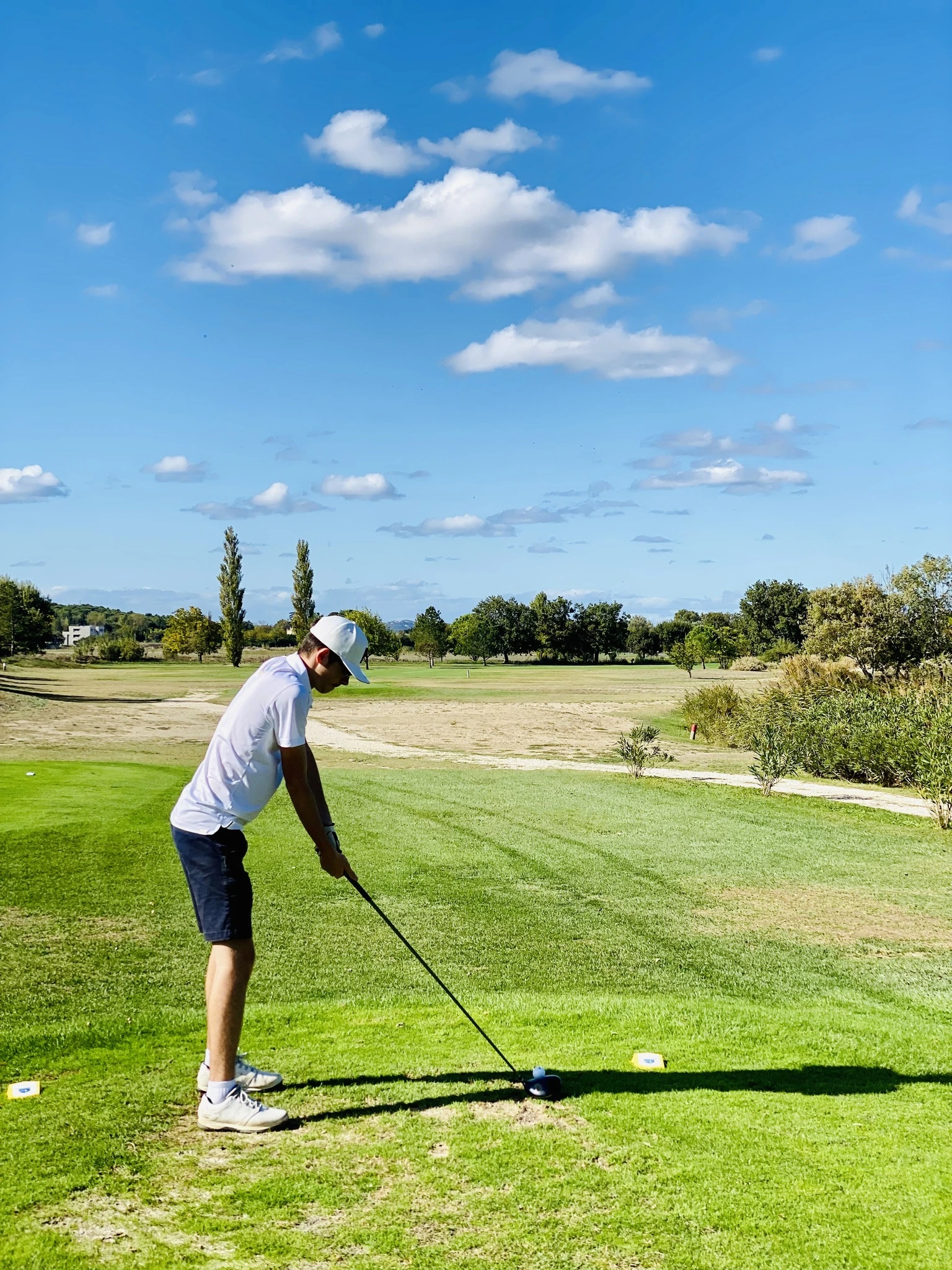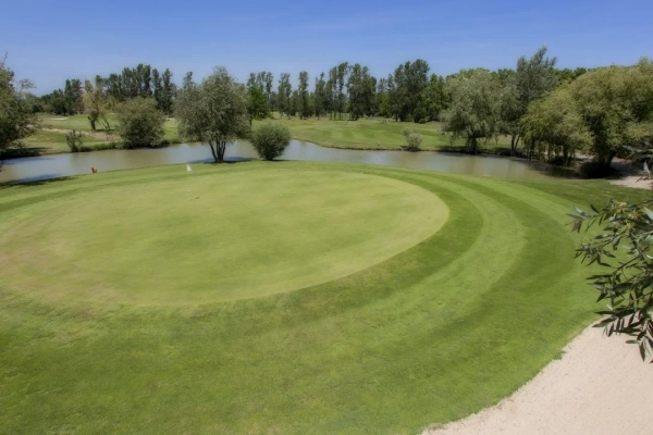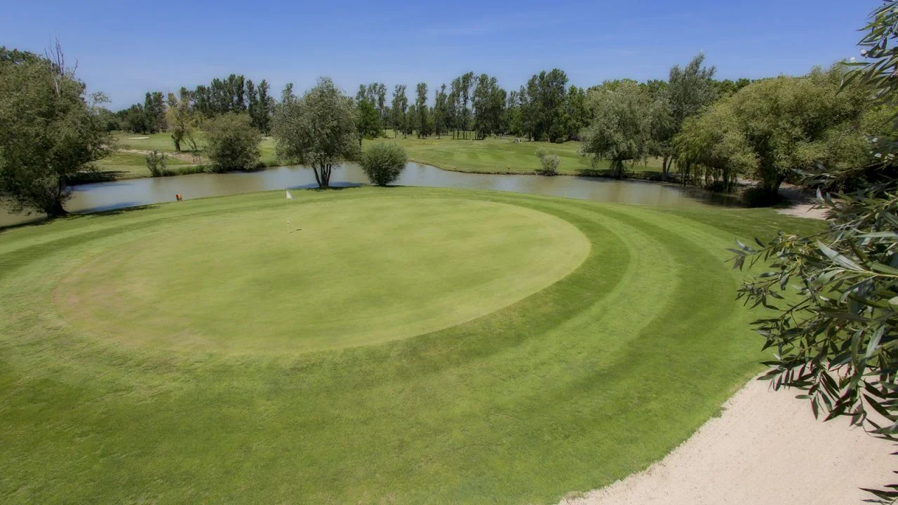 Ce lien avec le territoire se lit d’abord dans le décor. Le golf évolue dans un ensemble apprécié pour ses plans d’eau, ses ouvertures paysagères et son ambiance méridionale. Certains parlent d’un site entouré de lacs, d’autres insistent surtout sur le caractère verdoyant de l’ensemble. Dans tous les cas, cette présence de l’eau et du végétal structure la perception du lieu et contribue à sa singularité.